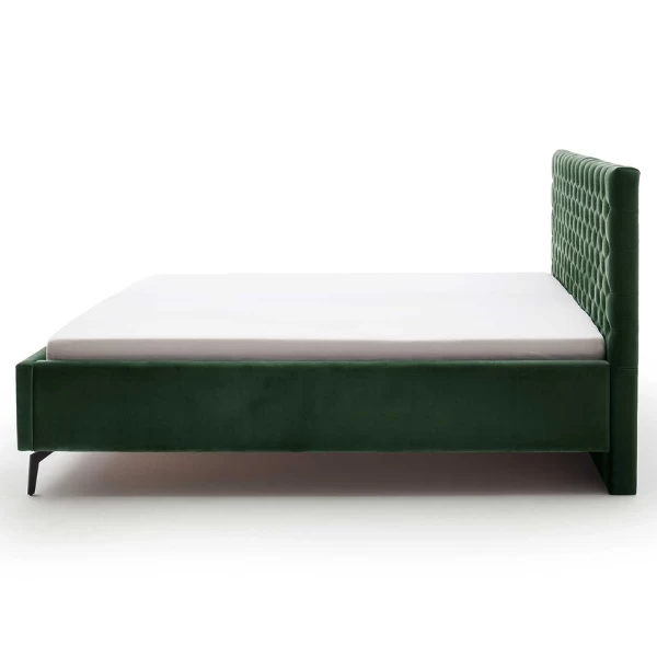De bedden Janice combineren een strak ontwerp met een glamoureuze look. Het gecapitonneerde hoofdbord geeft de bedden een luxueuze uitstraling. Dit bed is bekleed met donkergroene velours en is uitgerust met zwarte pootjes. Naast stijlvol zijn de bedden ook praktisch. Onder de lattenbodem is opbergruimte voorzien voor bijvoorbeeld kussens, bedlinnen of kleren. Dit bed heeft een ligoppervlak van 160x200cm. De matras is niet inbegrepen. De bedden Janice zijn verkrijgbaar in verschillende stijlvolle kleuren. Ontdek ze allemaal op onze website.