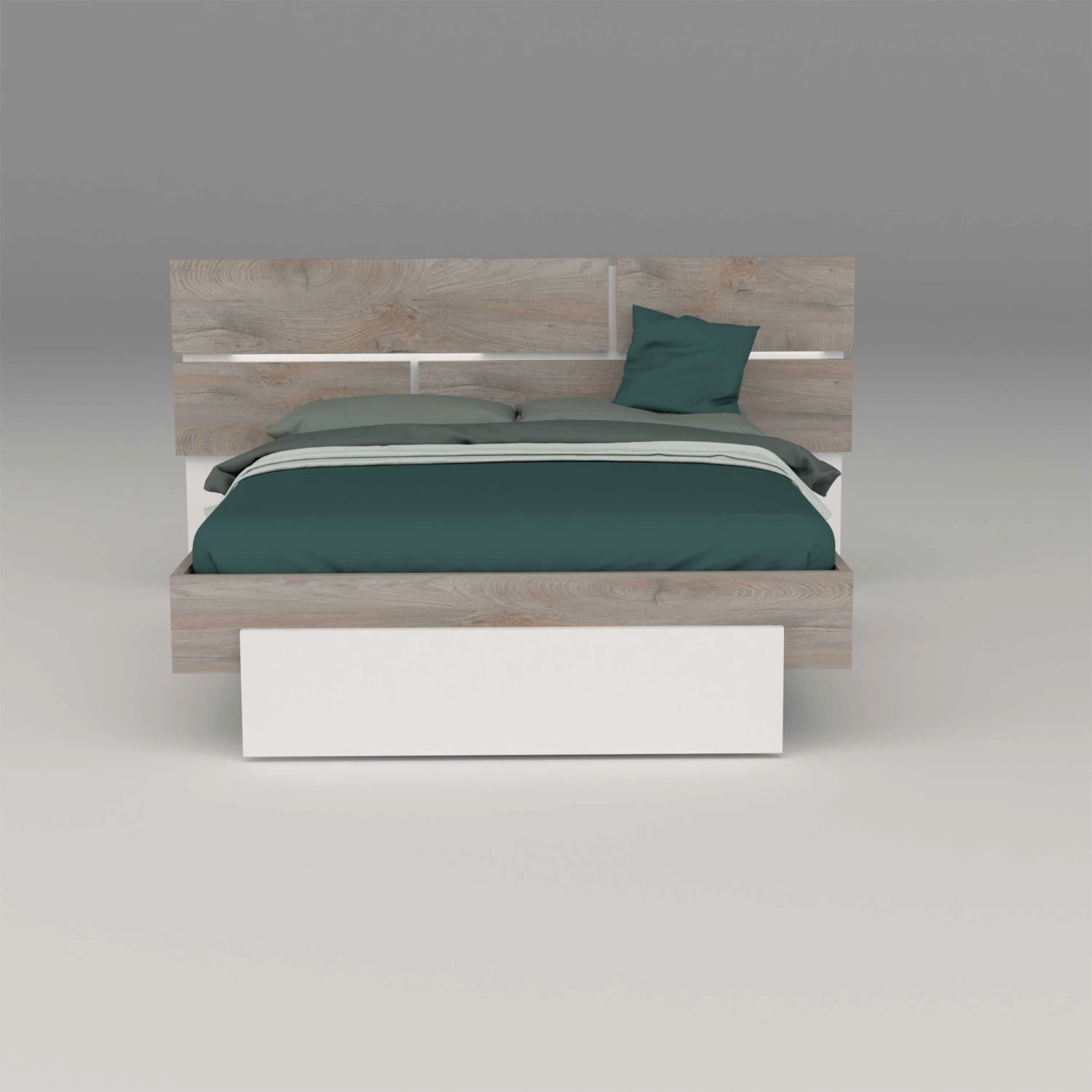 Creëer een moderne omgeving dankzij de meubelen van de Paxton-collectie. Deze meubelen zijn gemaakt uit spaanplaat met een gelakte afwerking in hoogglans wit en grijze eikdecor. De lichte kleuren bezorgen een rustige sfeer in de kamer.