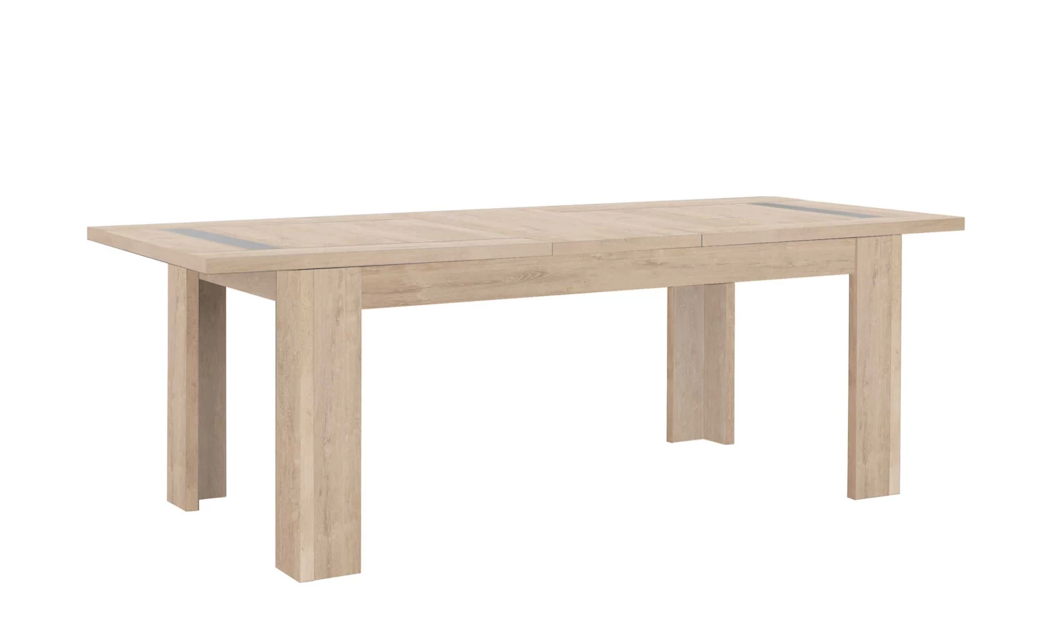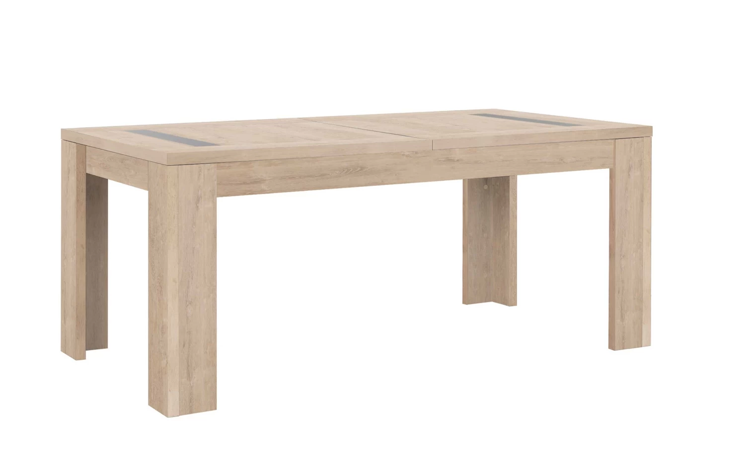 Deze eettafel heeft een standaard lengte van 181 cm en is uitgerust met een verlengstuk van 45 cm in het midden. De tafel is dus geschikt voor 8 tot 10 personen. Het tafelblad is afgewerkt met een UV-bestendige laklaag van polyester.