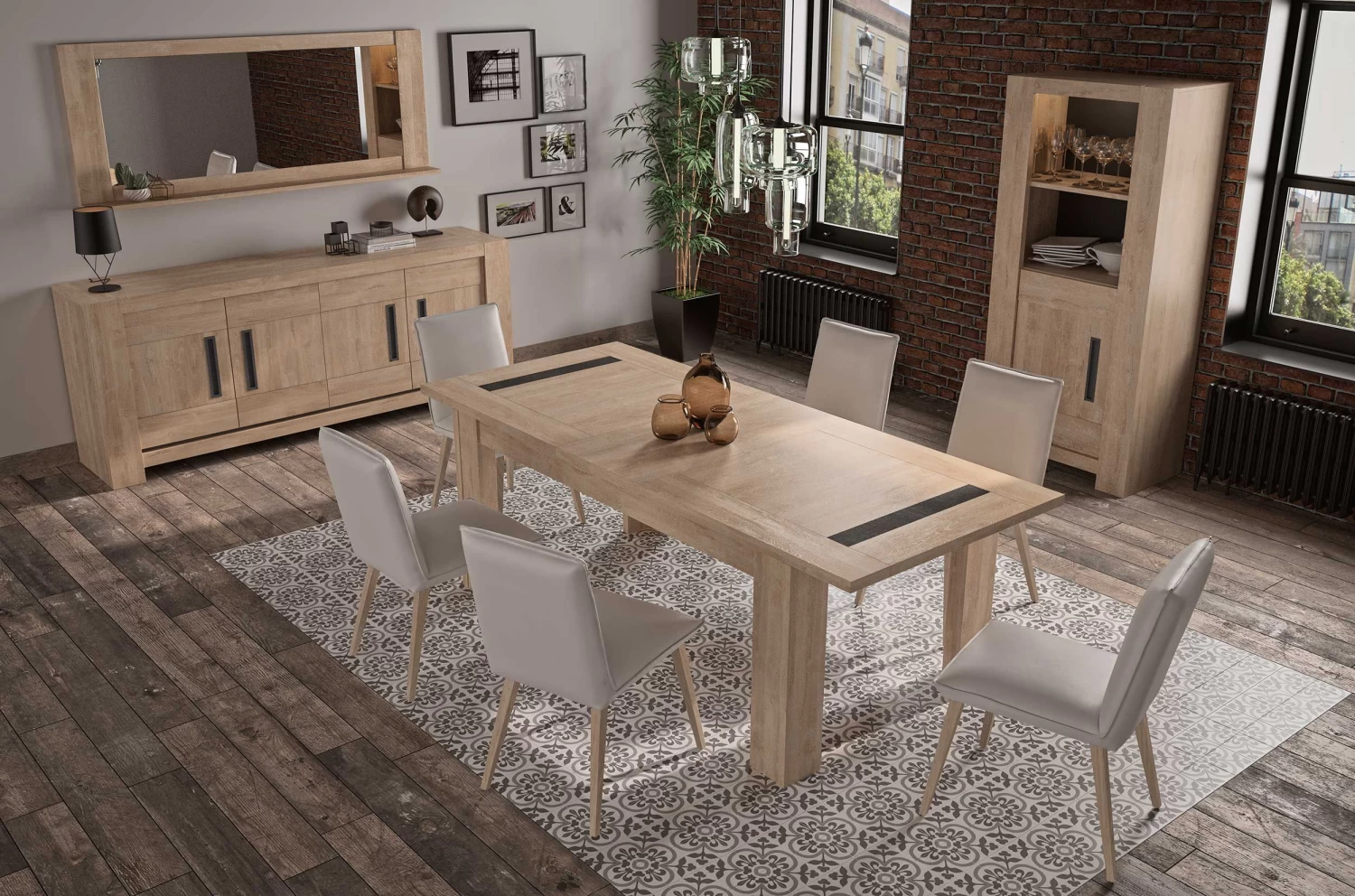 Maak van jouw woon- en eetkamer een gezellige plek met de meubelen van collectie Bosy. Alle meubelen zijn gemaakt van spaanplaat met een imitatieprint van blond eikenhout.