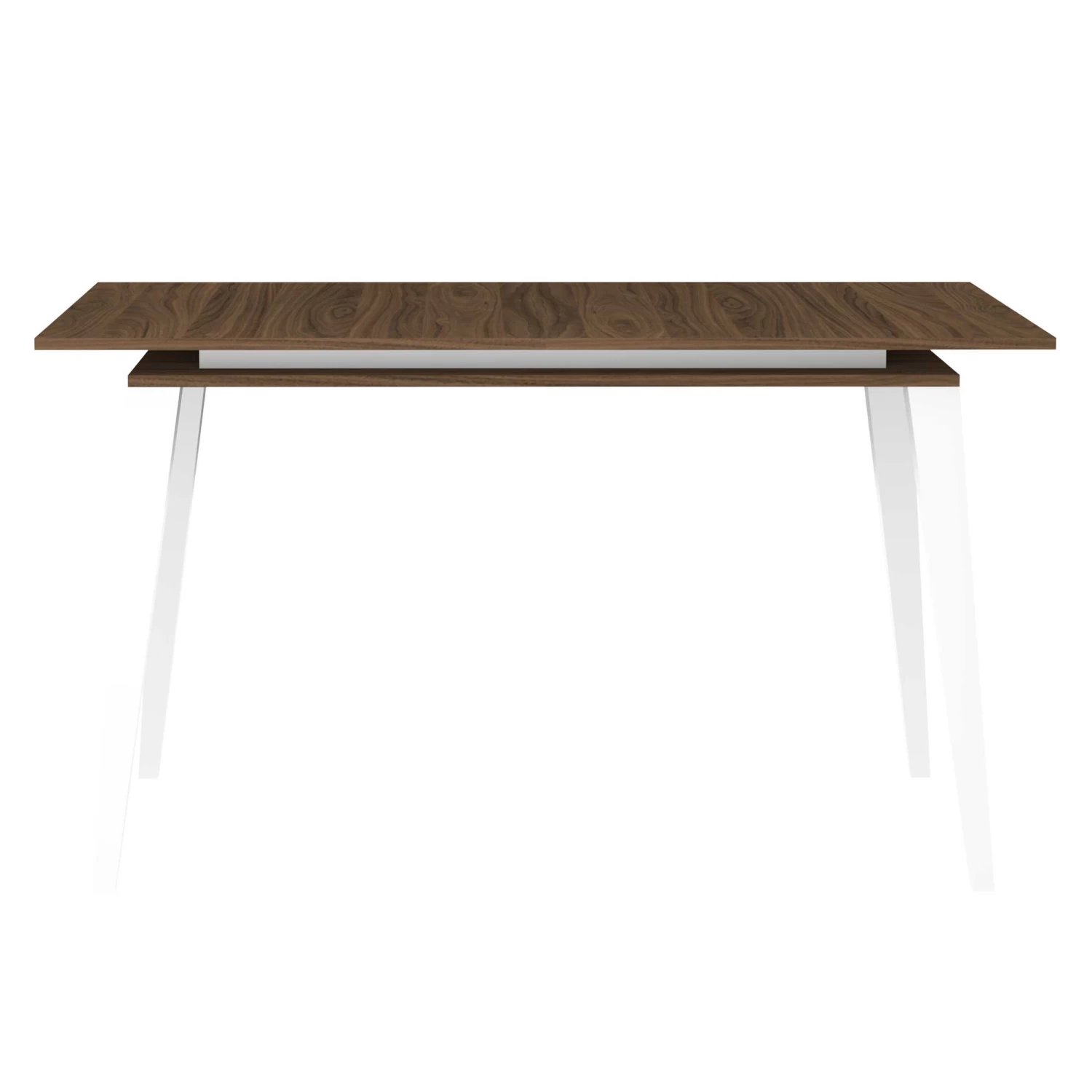 Verlengbare tafel Kim met een walnootdecor en houten poten.
