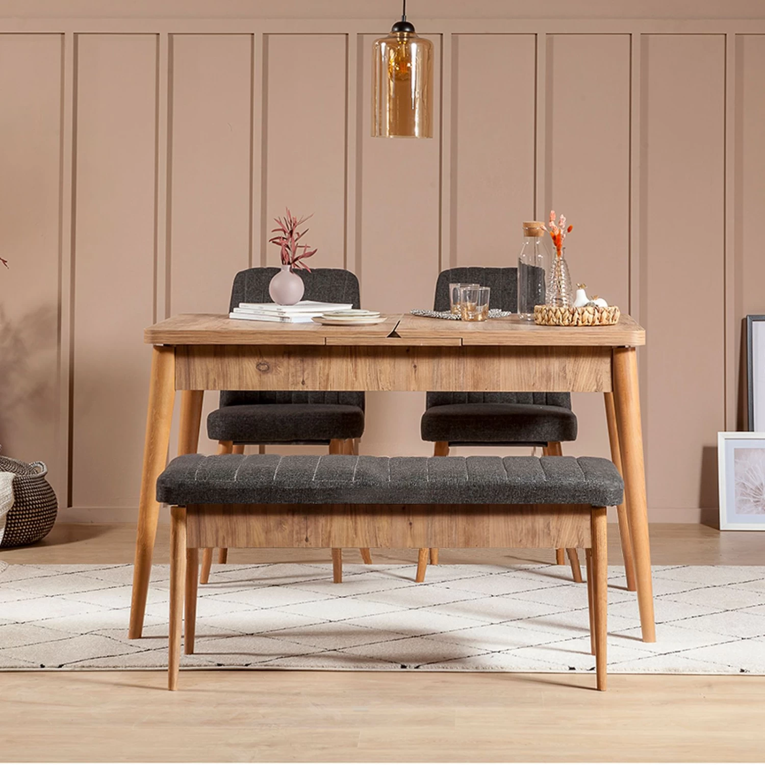 Maak kennis met de Vella Bench, een onmisbaar meubelstuk voor thuis of op kantoor. Gemaakt van de hoogste kwaliteit materialen en ontworpen om je ruimte te verbeteren, is deze bank de perfecte combinatie van stijl en functionaliteit. Met zijn constructie van 100% gemelamineerde spaanplaat biedt hij superieure duurzaamheid en weerstand tegen slijtage, zodat hij jarenlang meegaat. Een van de opvallende kenmerken van de Vella Bench is het materiaal van 100% linnen stof. Deze natuurlijke en luxueuze stof voegt niet alleen een vleugje elegantie toe aan de bank, maar biedt ook optimaal comfort. De zachte en ademende textuur maakt het ideaal voor langdurig zitten, of u nu geniet van een maaltijd met familie of werkt aan belangrijke projecten. Met een dikte van 18 mm is de Vella Bench stevig en stabiel en kan hij tegen een stootje. De poten van haagbeuk bieden niet alleen uitstekende ondersteuning, maar voegen ook een vleugje verfijning toe aan het totale ontwerp. Hun natuurlijke kleur is een aanvulling op de Atlantic Pine Anthracite kleur van de bank, waardoor een visueel aantrekkelijk meubelstuk ontstaat dat moeiteloos past bij elke interieurstijl. Met een royale afmeting van breedte: 110cm, hoogte: 48cm, en diepte: 40cm, biedt de Vella Bench voldoende zitruimte voor meerdere personen. De afmetingen zijn zorgvuldig gekozen om ervoor te zorgen dat de bank comfortabel in verschillende kamergroottes past zonder de ruimte te overweldigen. Bovendien wordt de bank geleverd met een handig opbergmeubel van 95 cm breed, 12 cm hoog en 27 cm diep. De Vella Bench is ontworpen met uw comfort in gedachten, zoals blijkt uit de zithoogte van 48cm. Deze hoogte is ideaal voor de meeste mensen en zorgt voor een comfortabele en ergonomische zithouding. Of u de bank nu gebruikt in uw eetkamer, woonkamer of kantoor, u kunt er zeker van zijn dat de Vella Bench u het beste comfort en ondersteuning zal bieden. In conclusie is de Vella Bench een uitzonderlijk meubelstuk dat stijl, functionaliteit en duurzaamheid combineert. De constructie van 100% gemelamineerde spaanplaat garandeert langdurig gebruik, terwijl de 100% linnen stof een vleugje elegantie en comfort toevoegt. Met zijn Hornbeam poten, royale zitruimte, handige opbergeenheid en ergonomische zithoogte is deze bank een veelzijdige toevoeging aan elke ruimte. Kies de Vella Bank in Atlantic Pine Antraciet kleur en