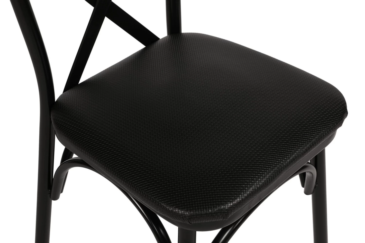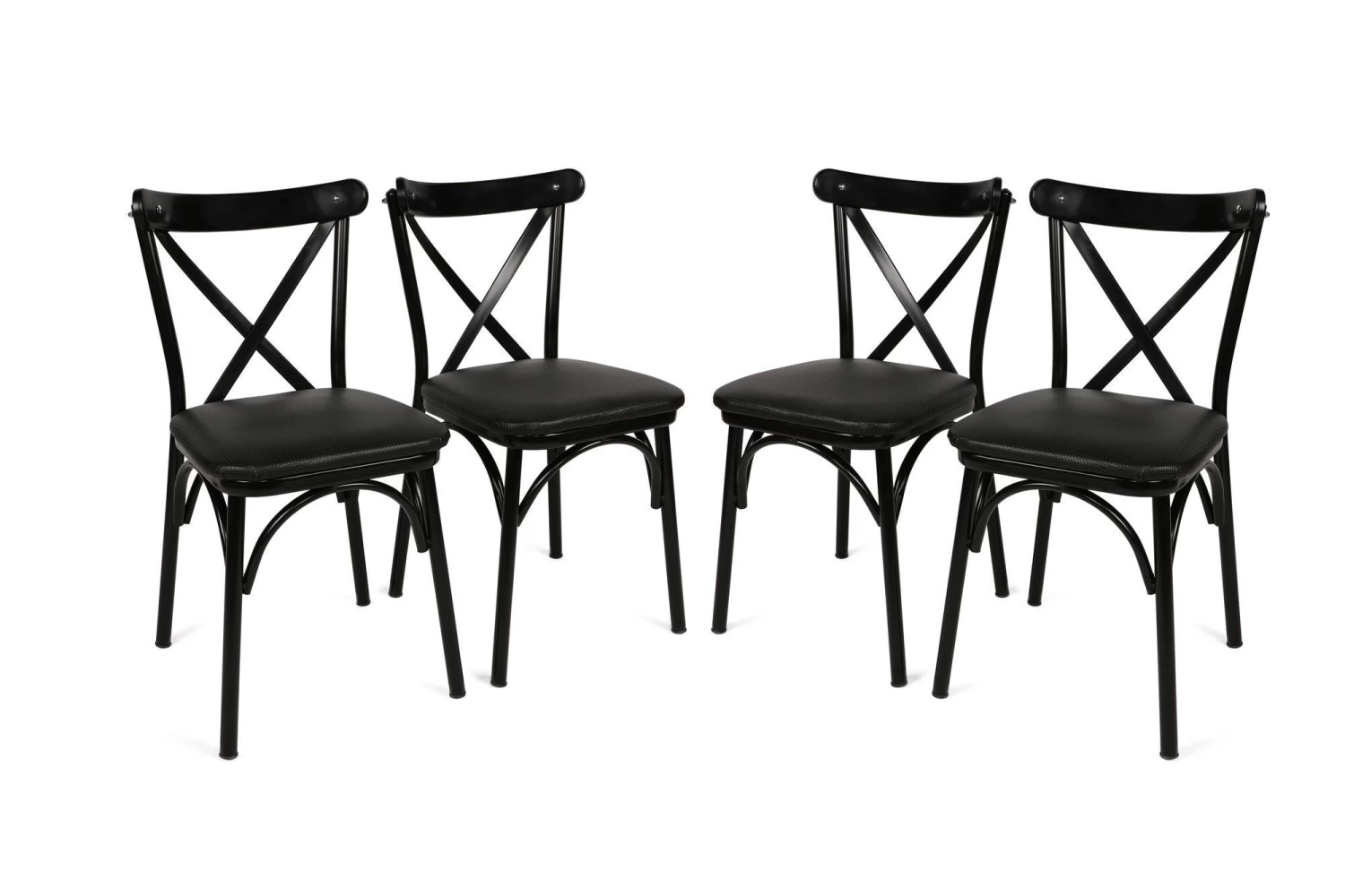 Vella Stoelset: 4 ergonomisch ontworpen stoelen met metalen poten en 100% gemelamineerde spaanplaat. Strakke zwarte kleur, met een draagvermogen van 200 kg