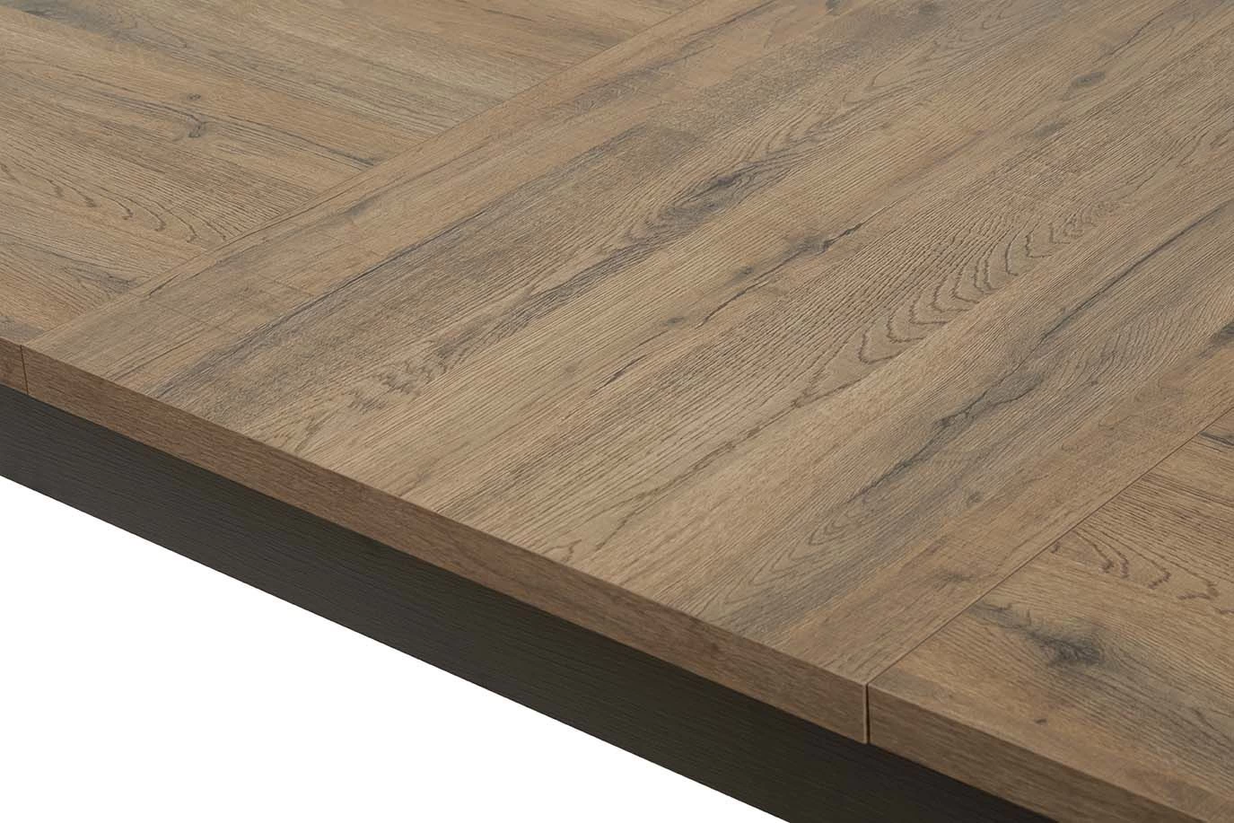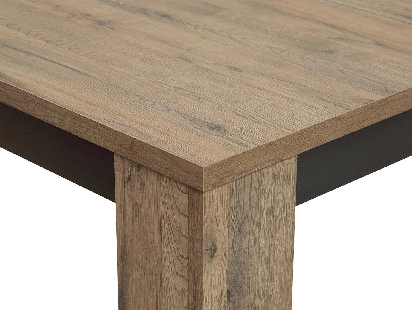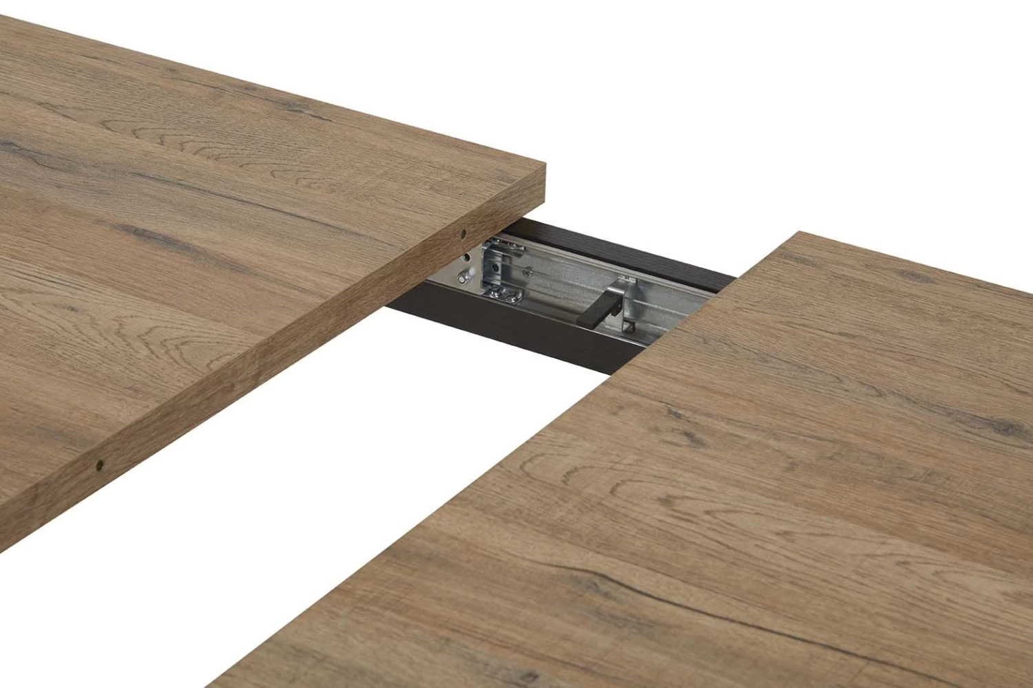 Eettafel Chenice 180x90x76cm uit spaanplaat afgewerkt met imitaitie-eikenhout. Kan verlengd worden tot 230cm.