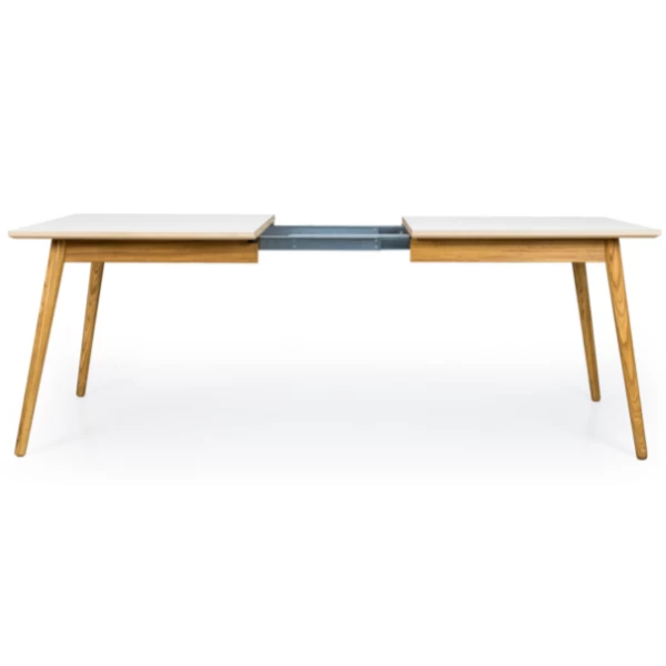 Dit verlengstuk dient om de rechthoekige Dot-eettafel met 45 cm te verlengen. De tafel is dan 205 cm in plaats van 160 cm lang, waardoor er plaats is voor 2 extra personen. Het verlengstuk is gemaakt uit witgelakt MDF.