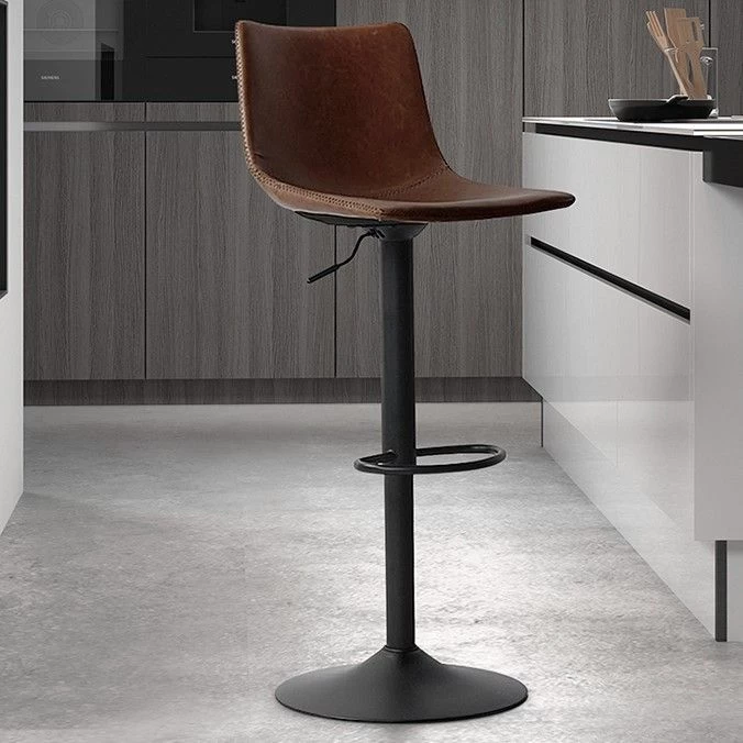 Heb je er al eens over nagedacht om je keukentafel en -stoelen te vervangen door een barset? Je bespaart er namelijk ruimte mee en het is ook nog eens erg hip! Deze Fontana-barstoel is verstelbaar in hoogte, waardoor hij perfect onder elke bartafel zal passen. De barstoel is bekleed met bruin kunstleer en heeft een metalen poot met een voetsteun.