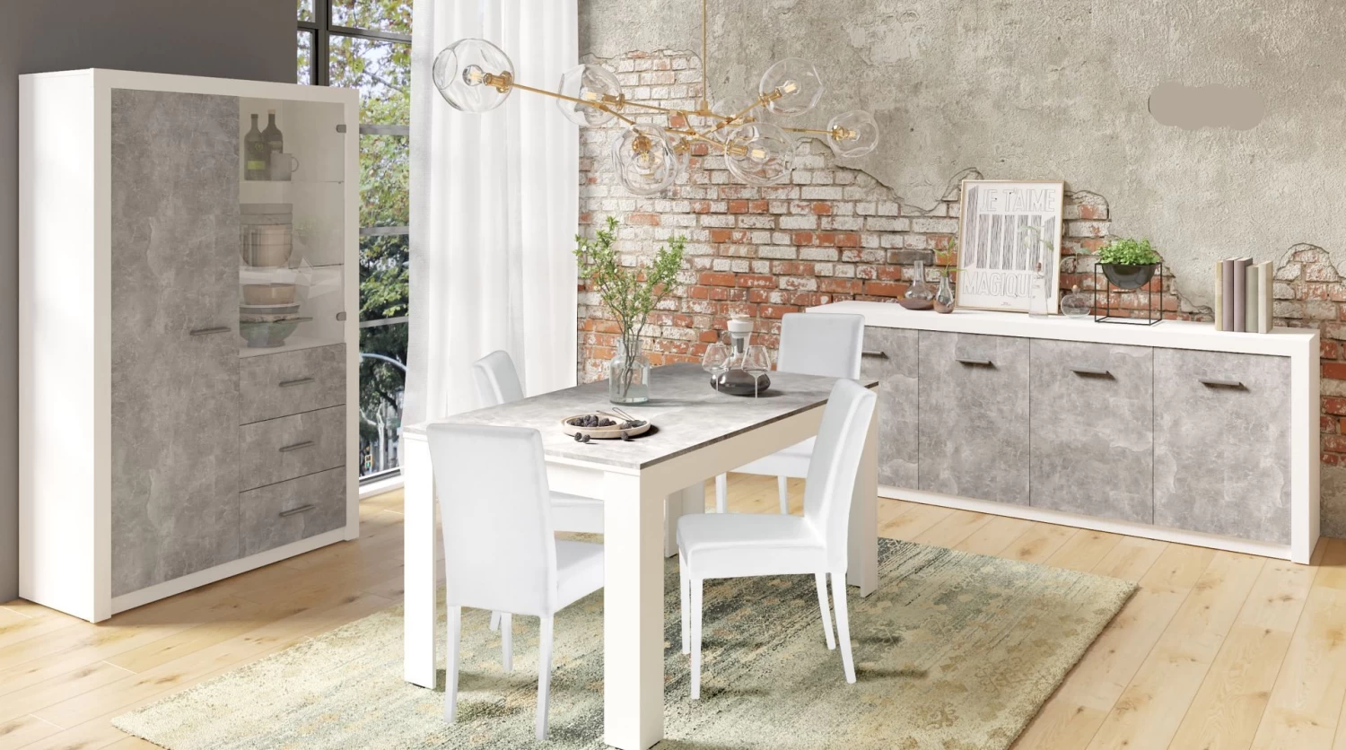 Vitrinekast Alexi Met Ledverlichting – Wit/beton