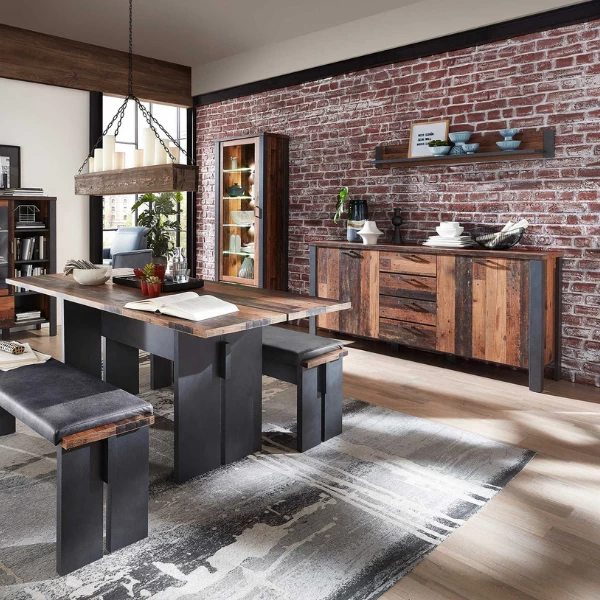 Vitrinekast Carthago 69cm 1 Deur & 1 Lade – Oud Hout/antraciet