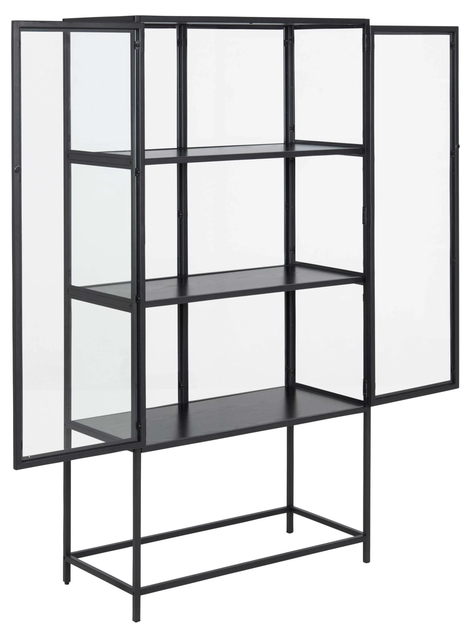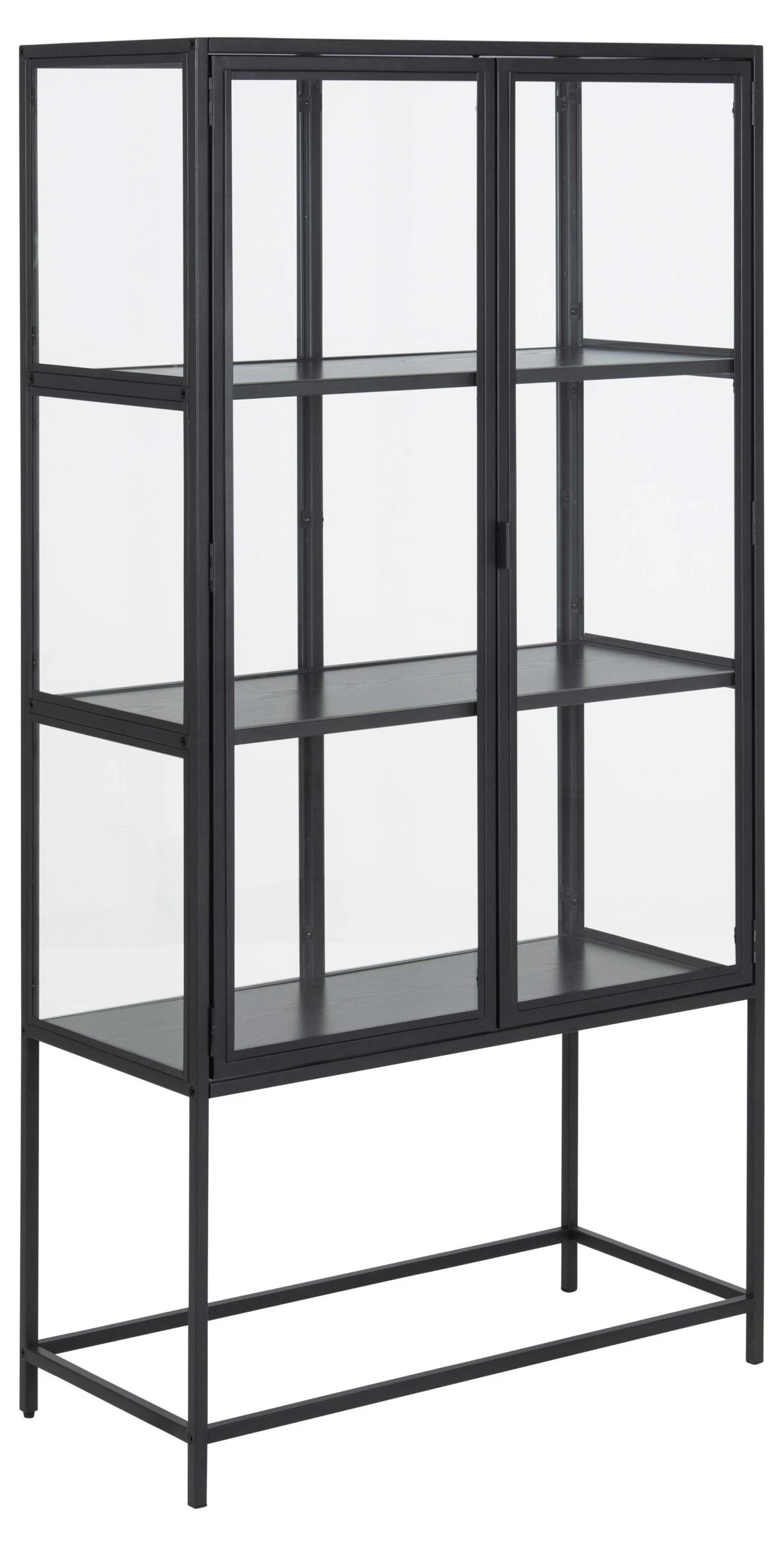2-deurs vitrinekast Dover in mat zwart met 3 legplanken in zwart esdecor.