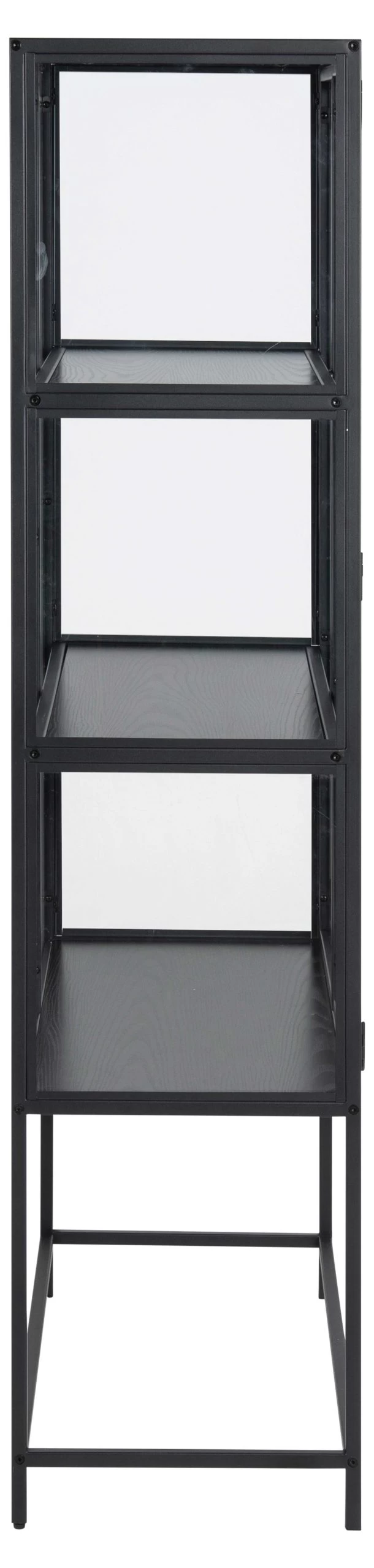 Met de meubelen uit de Dover collectie richt je je huis in volgens de laatste trends. Deze stoere vitrinekast met 2 deuren is gemaakt van zwart gepoedercoat metaal en telt 3 legplanken met een zwart esdecor, waarop je boeken, servies, decoratie… mooi kunt uitstallen.