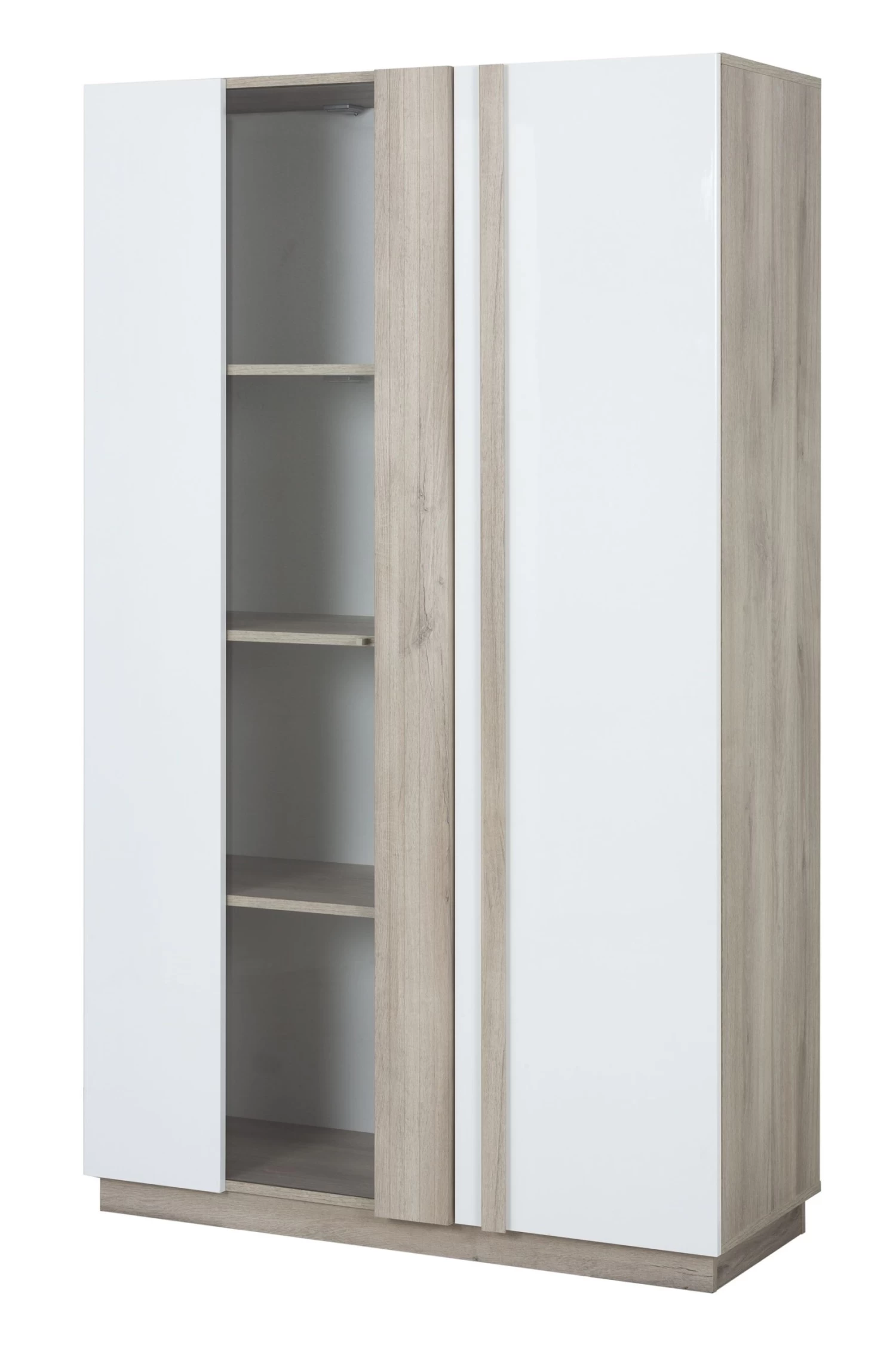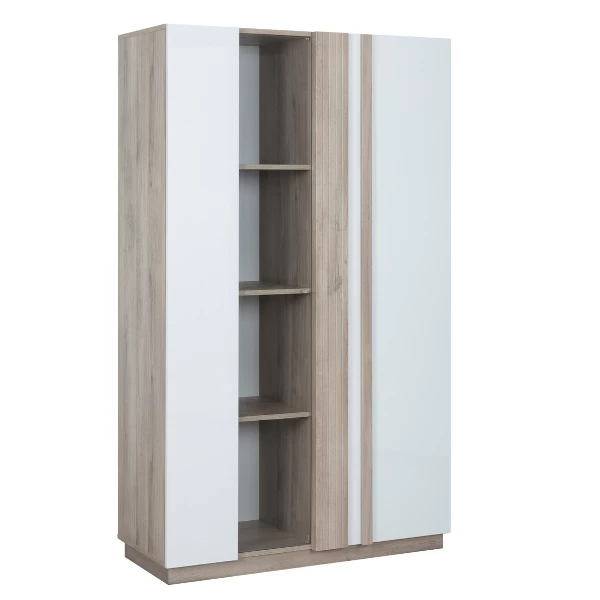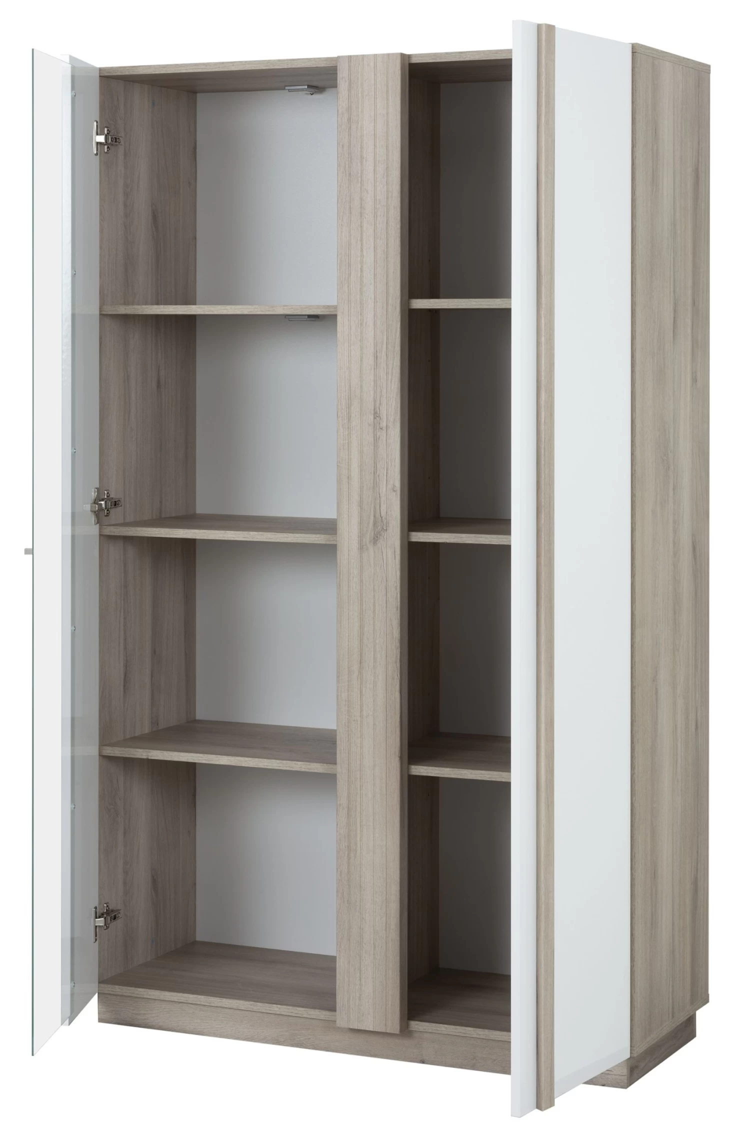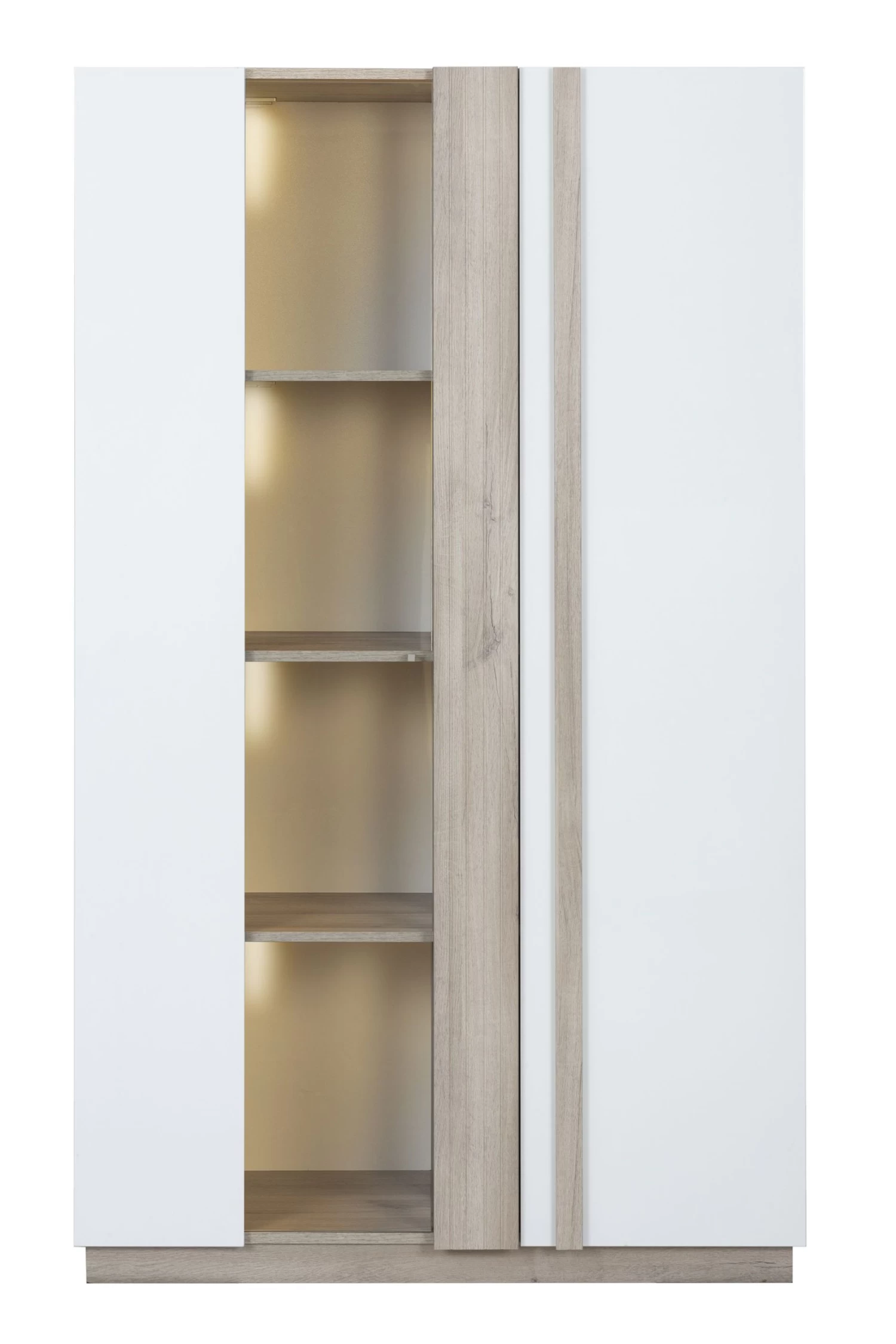 Deze vitrinekast met 2 (glas)deuren biedt extra veel opbergruimte in je tv-ruimte. Je kunt aan de kast 4 leds toevoegen om je servies en favoriete objecten in de verschillende vakken mooi te verlichten.