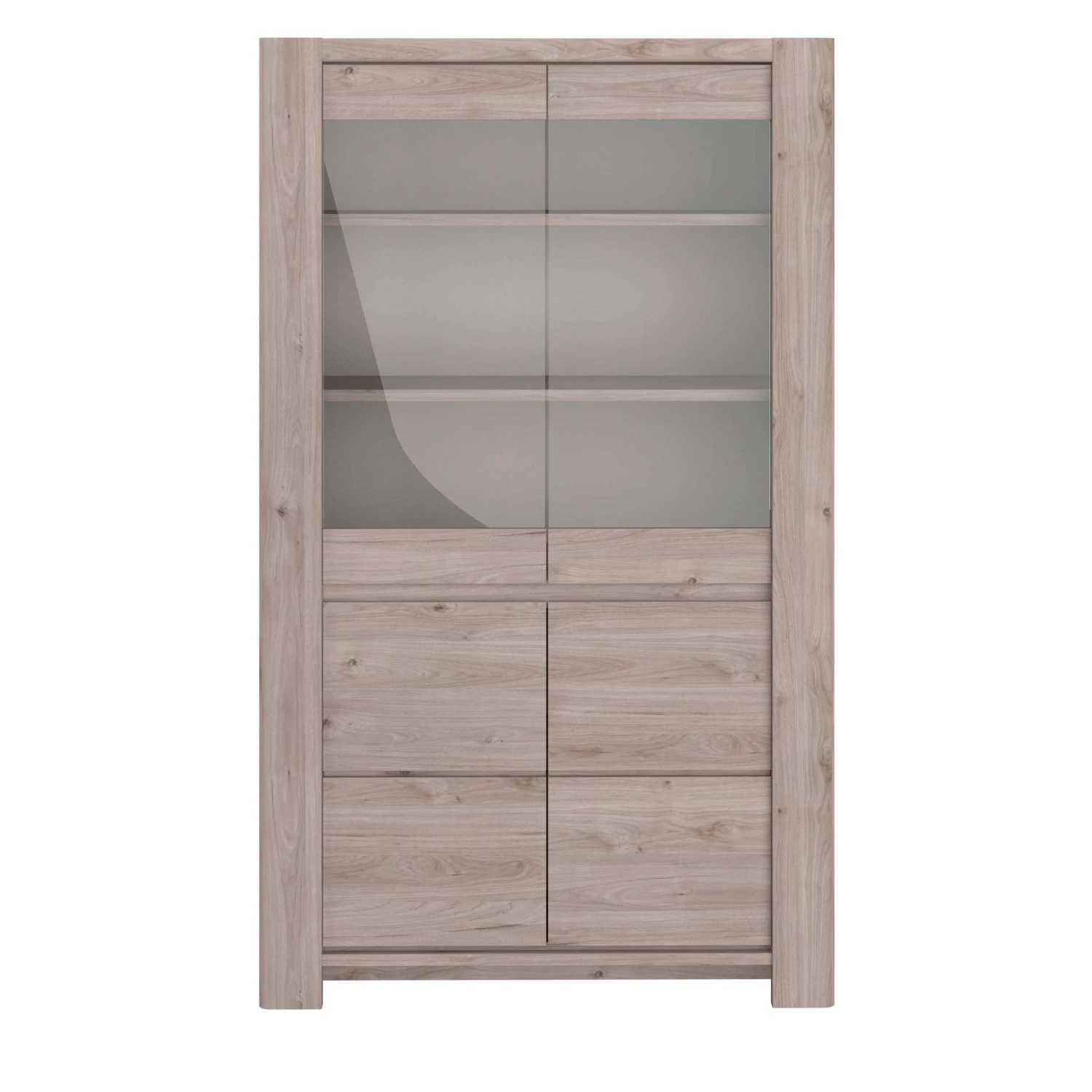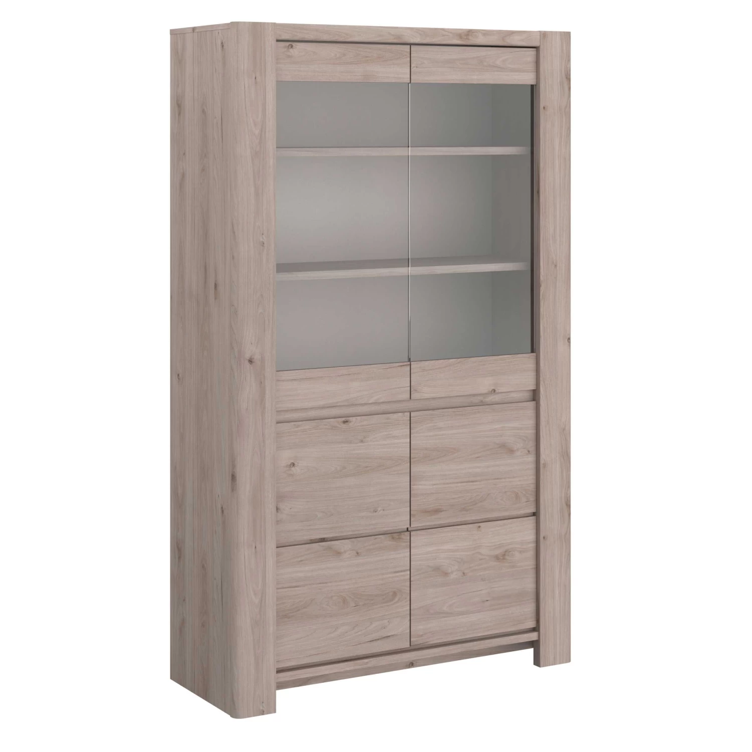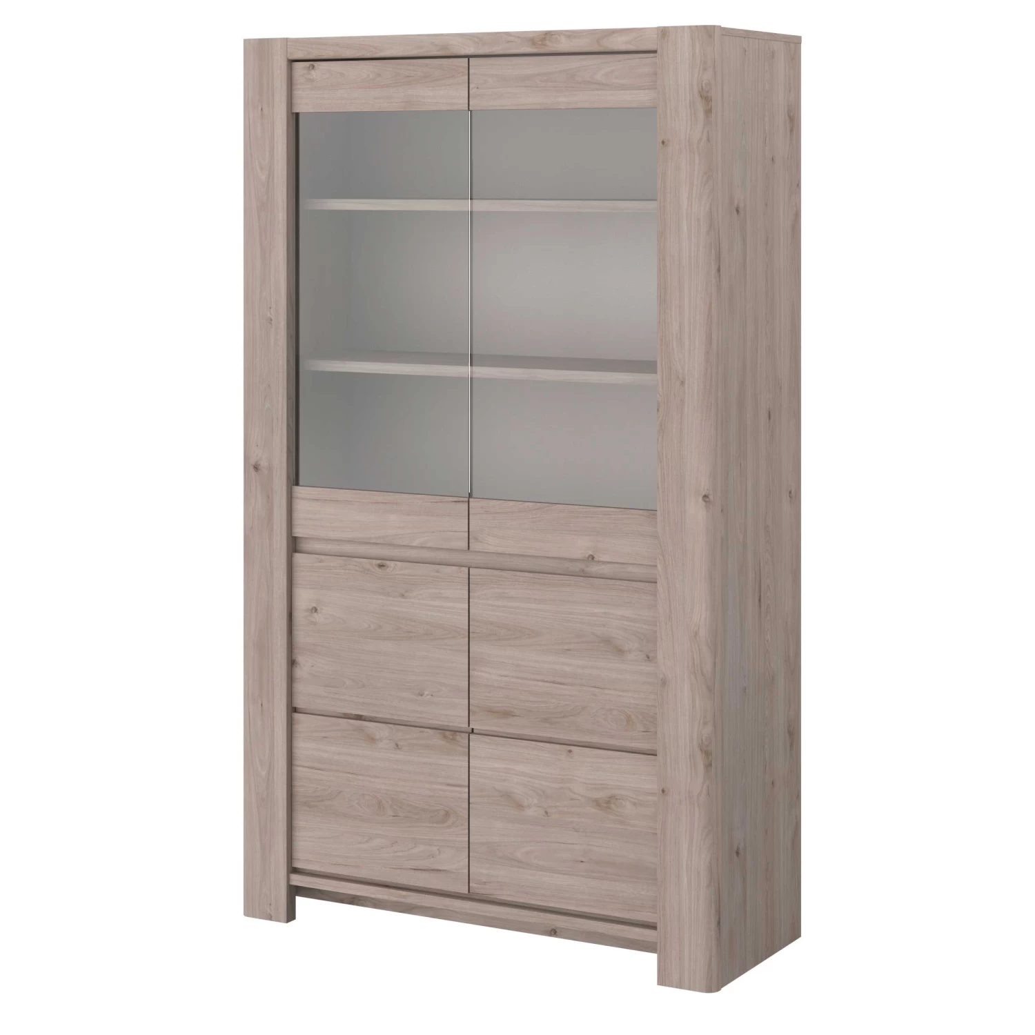In vitrinekast Porto berg je heel wat praktische en decoratieve objecten op. De kast is uitgerust met drie legplanken en vier deuren, waarvan twee glasdeuren. Hierdoor geef je jouw mooiste decoratie of servies alle aandacht die ze verdienen!