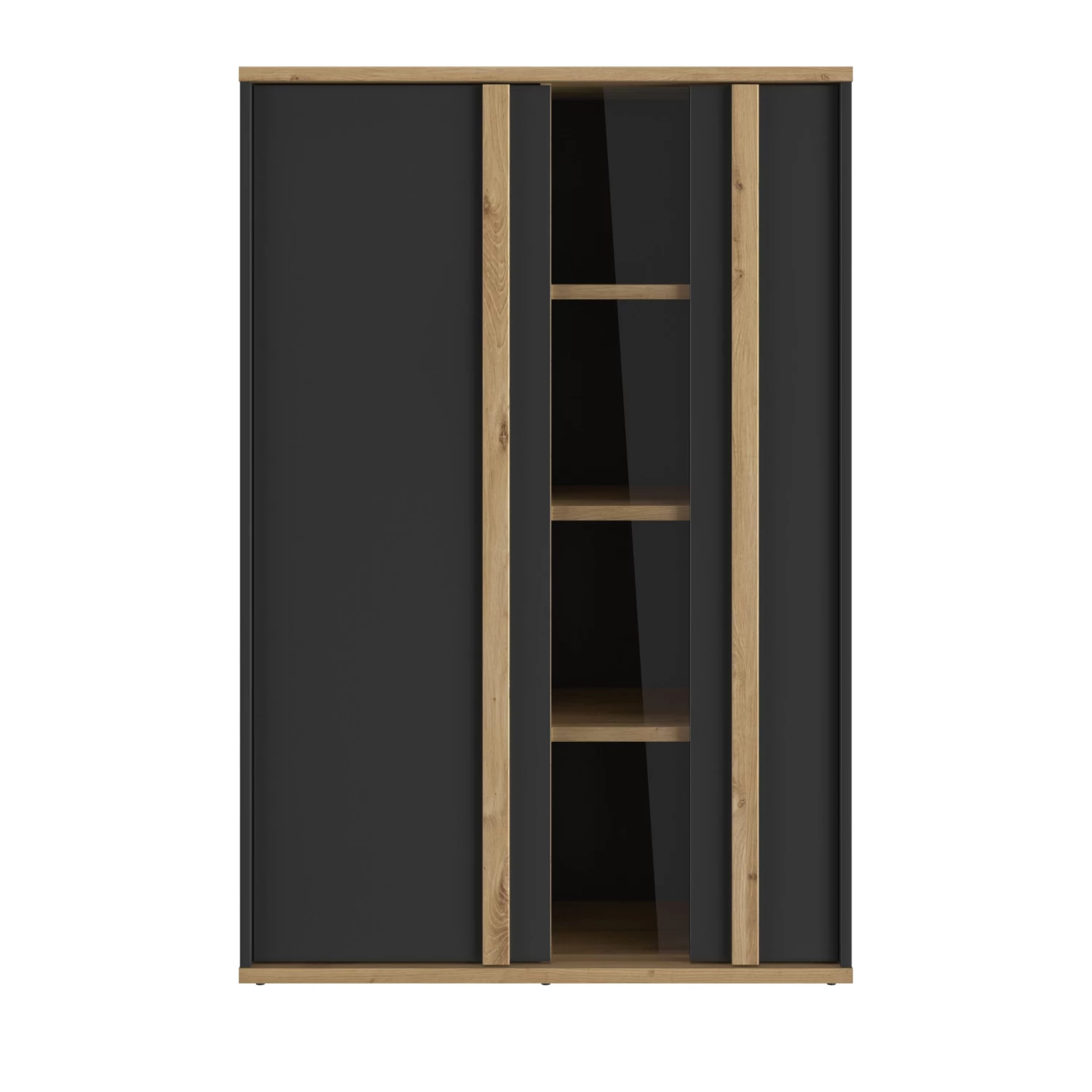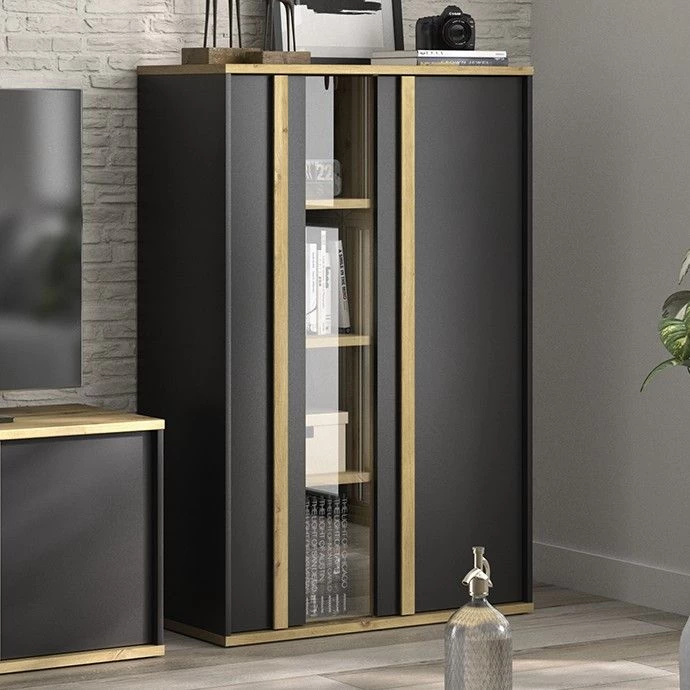 Vitrinekast Ralphio 90x40x135cm 2 Deuren – Zwart/eik