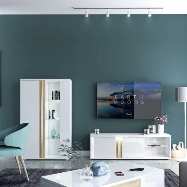 Vitrinekast Tannee 110x45x180cm 2 Deuren – Wit/eik