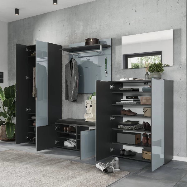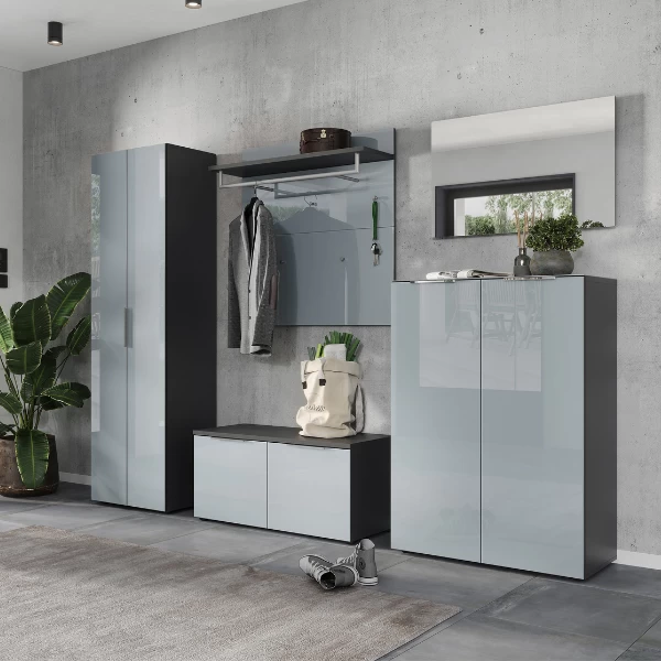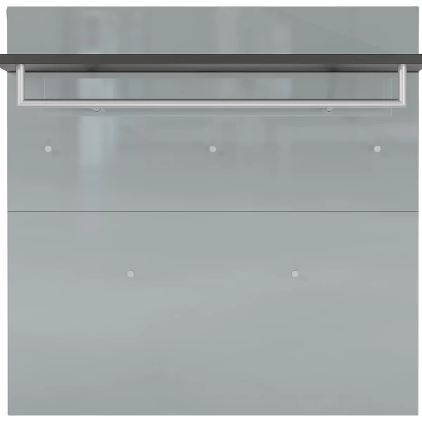 Functioneel elegant. Zo kan deze wandkapstok uit de Elio-reeks het beste omschreven worden. Door de combinatie van een paneel met een zilvergrijs, glazen front en een donkergrijze hoedenplank is deze wandkapstok een ware streling voor het oog. Daarnaast beschikt hij over alles wat je in een kapstok zoekt. Hij beschikt namelijk over een hoedenplank (max. 10 kg), een kledingroede (max. 10 kg) en 5 kledinghaakjes (max. 3 kg per haakje).
