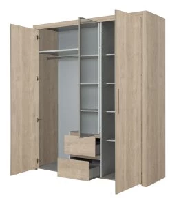 Geef de slaapkamer een frisse make-over met de meubelen van de Lina-collectie! Deze meubelen zijn gemaakt van spaanplaat met een papieren imitatieprint van licht eikenhout.