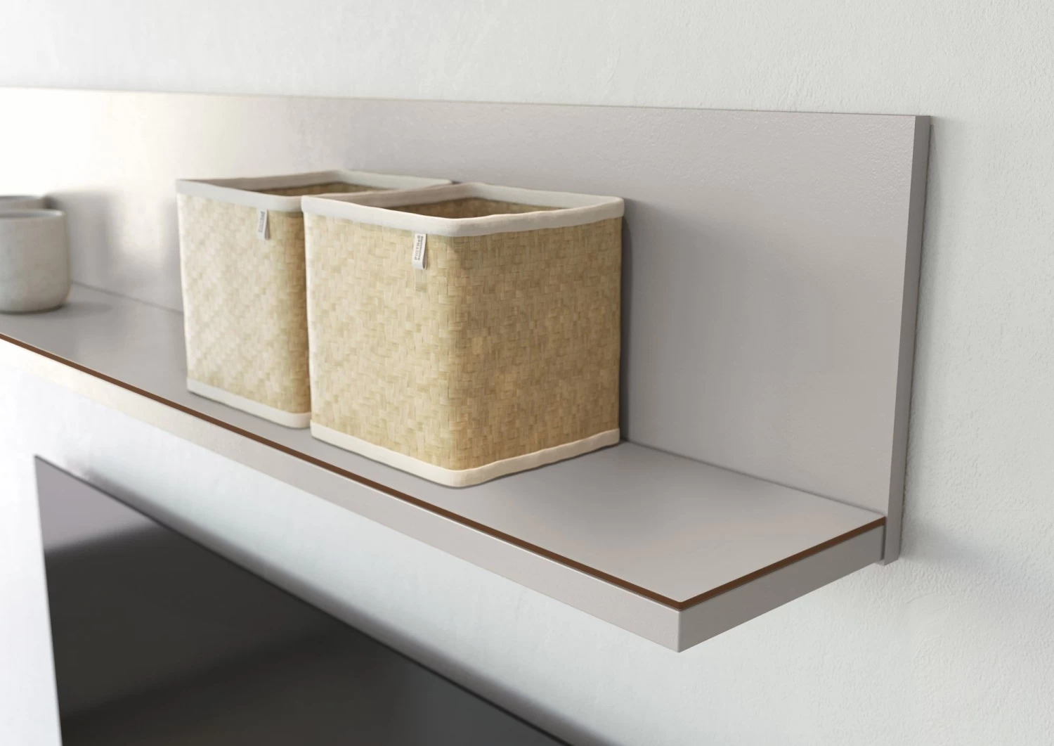 Met een breedte van 164 cm, een hoogte van 25 cm en een diepte van 20 cm biedt de Karsten-wandplank heel wat plaats voor boeken, decoratie en accessoires. Deze ruime wandplank is precies even breed als het tv-meubel in de Karsten-collectie en is daarom ideaal om samen te combineren. De subtiele afwerking van de beigetint kasjmier met het walnootdecor aan de randen geeft een warme look aan dit voorts moderne meubel. De stevige en kwaliteitsvolle ABS-randen en de coating in melaminehars maken het meubel volledig af.