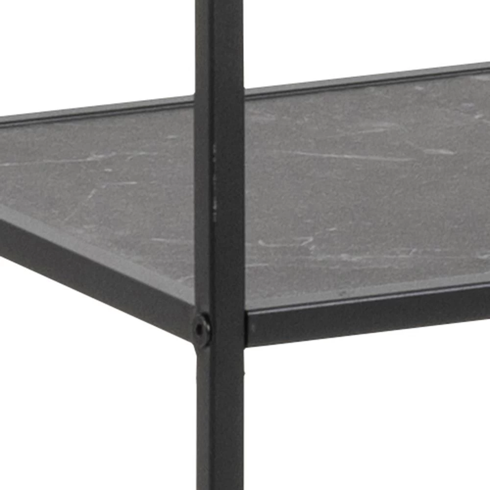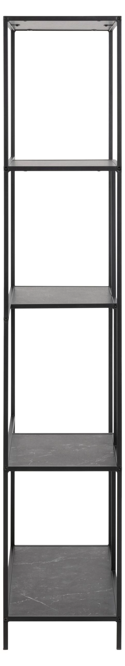 Wandrek Infinity (h: 170 cm), met 3 zwevende legplanken in marmerlook en een frame uit zwart gepoedercoat metaal.