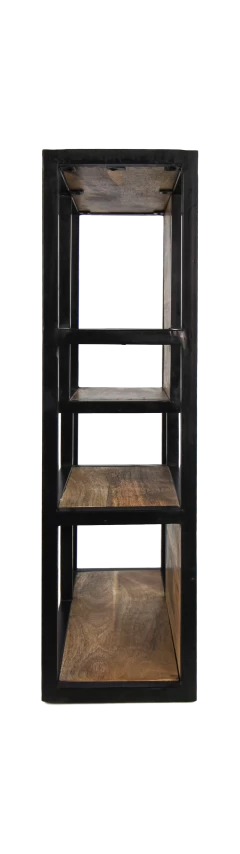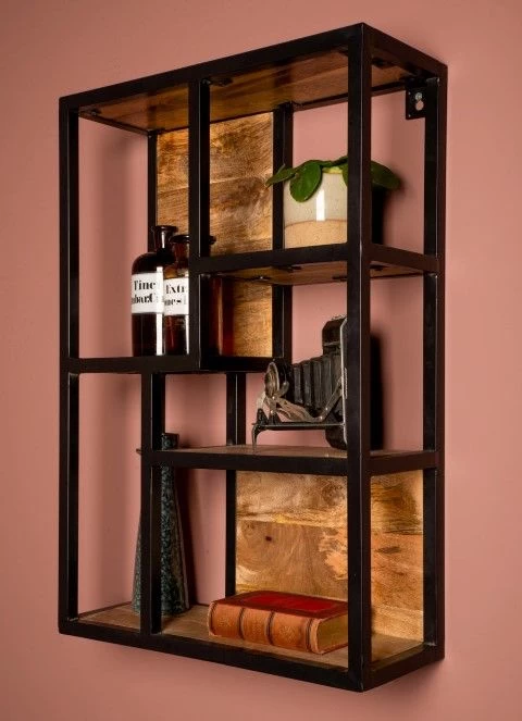 stijl in huis met dit wandrek met metalen zijkanten en mangohouten legplanken van