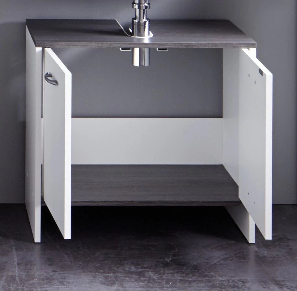 Met zijn moderne en neutrale look biedt de wastafelonderkast eindeloze combinatiemogelijkheden met je bestaande meubels. Het wordt gedemonteerd geleverd, inclusief alle benodigde montage-instructies en materialen. Decoraties zijn niet inbegrepen in de levering.
