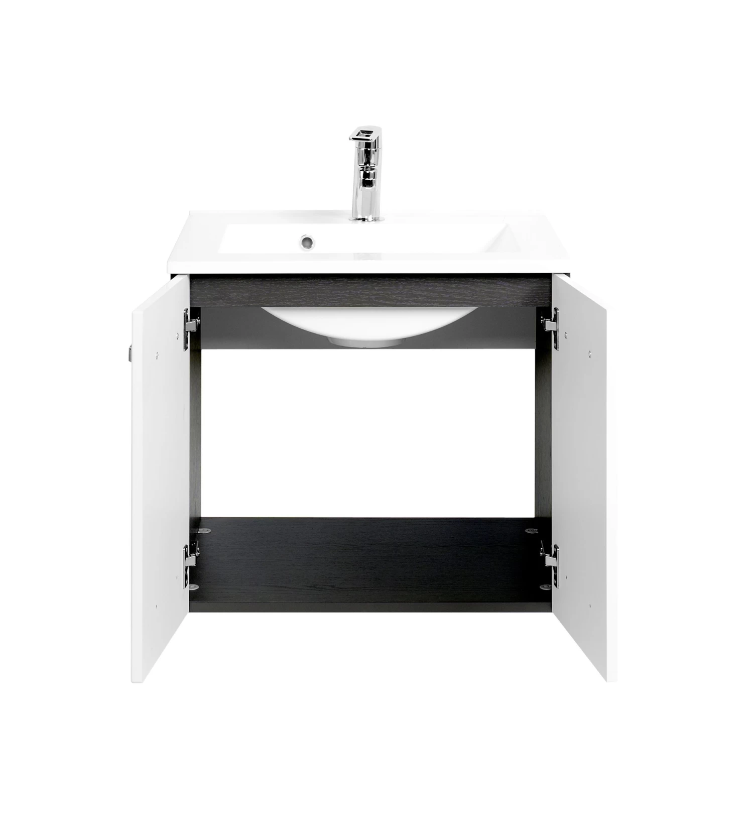 Geef jouw badkamer een frisse make-over met de meubelen van de Bobbi-collectie, waartoe ook dit compacte wastafelmeubel van 60 cm breed behoort. Het meubel is uitgerust met een witte wastafel en 2 deuren die zijn afgewerkt in hoogglans wit.