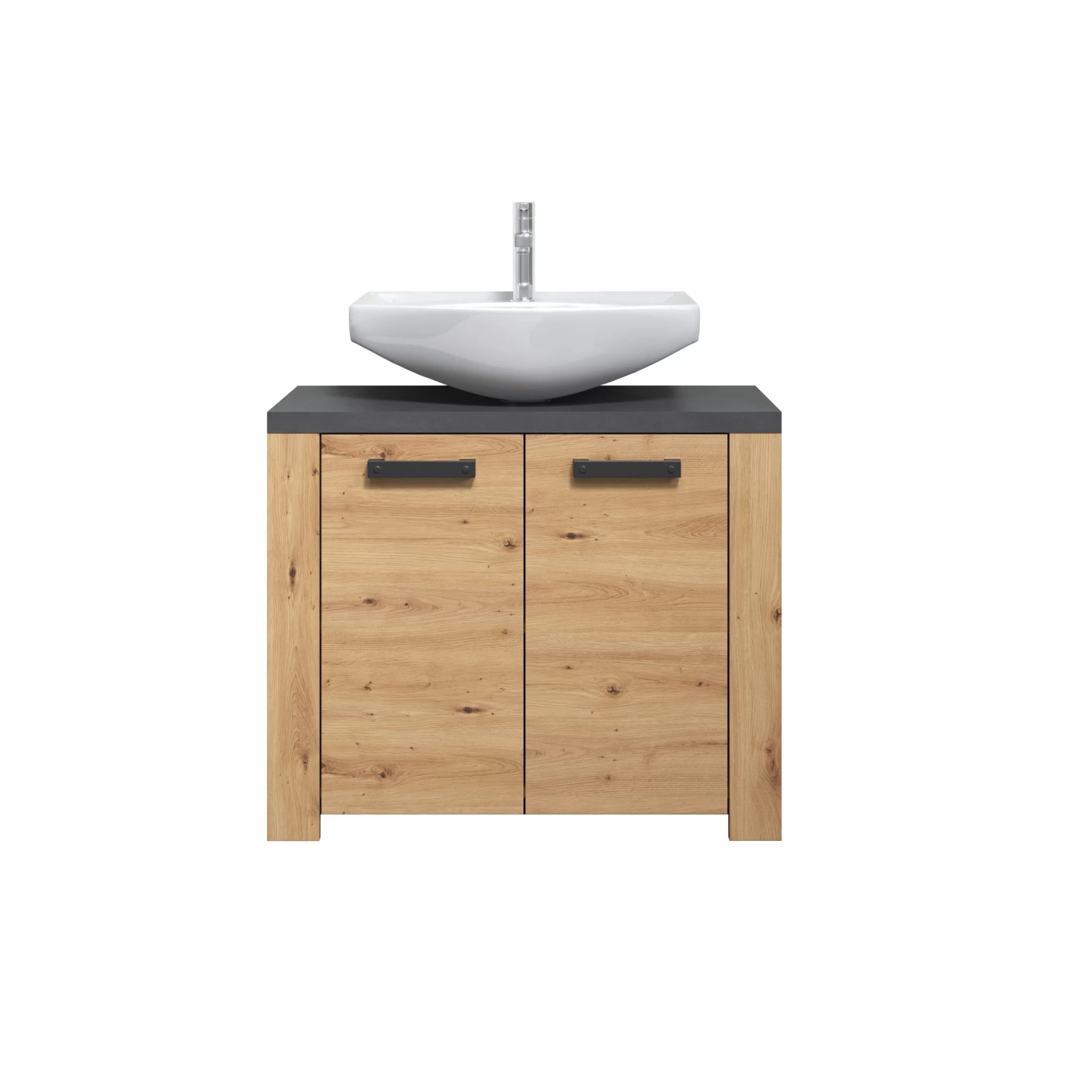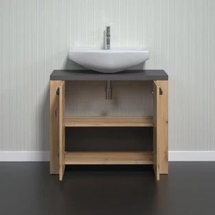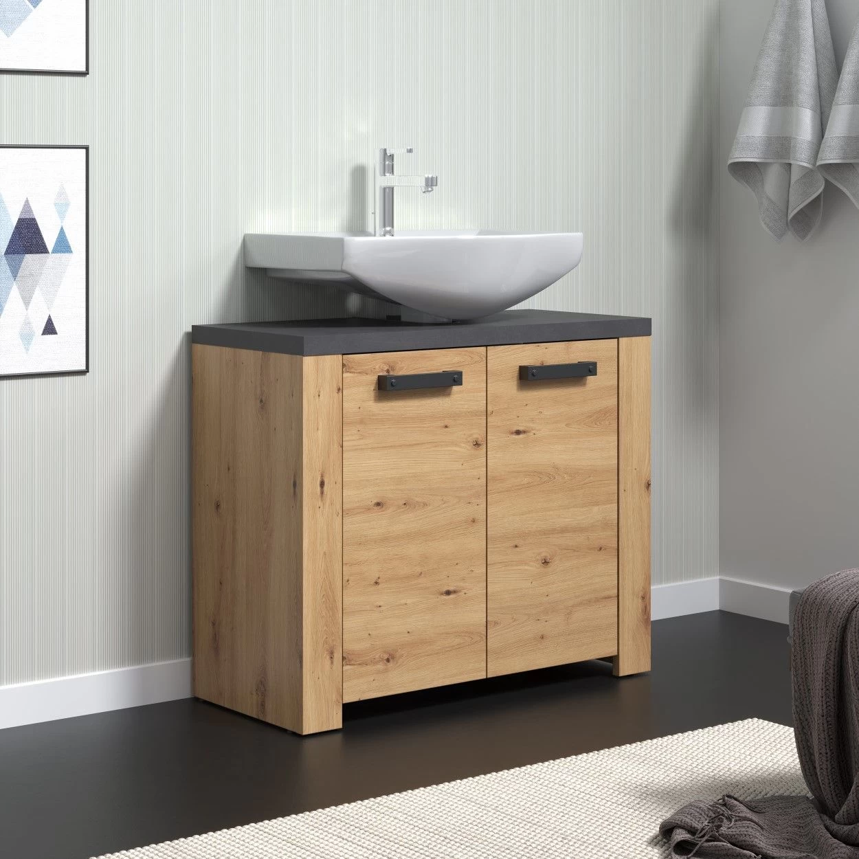 Deze kast heeft twee deuren die de perfecte plek bieden om handdoeken, toiletartikelen en andere spullen netjes op te bergen. Het Artisan Oak-ontwerp voegt een vleugje verfijning toe aan je badkamerinterieur.