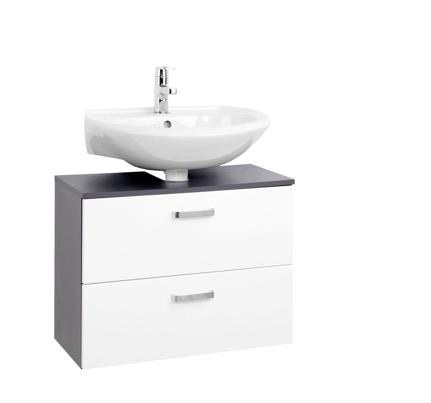 Badkamermeubel Bobbi is gemaakt van gemelamineerde spaanplaat. De fronten van de lade en deur zijn gemaakt van gemelamineerde MDF.