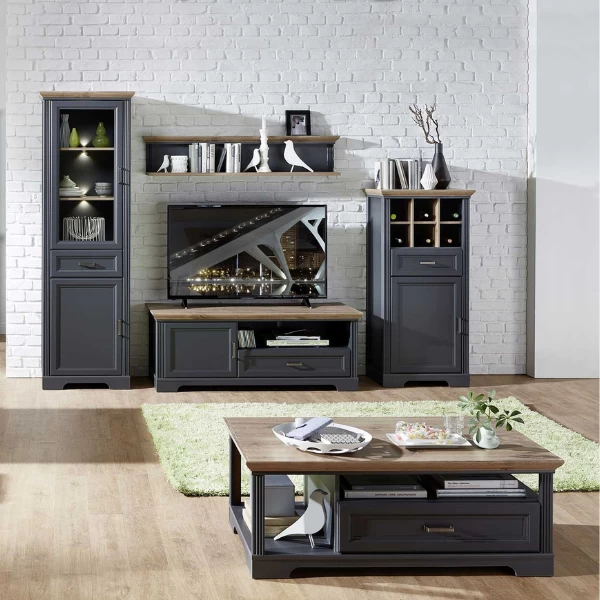 Wijnkast Samine 66cm Voor 6 Flessen 1 Deur & 1 Lade – Grafiet/eik