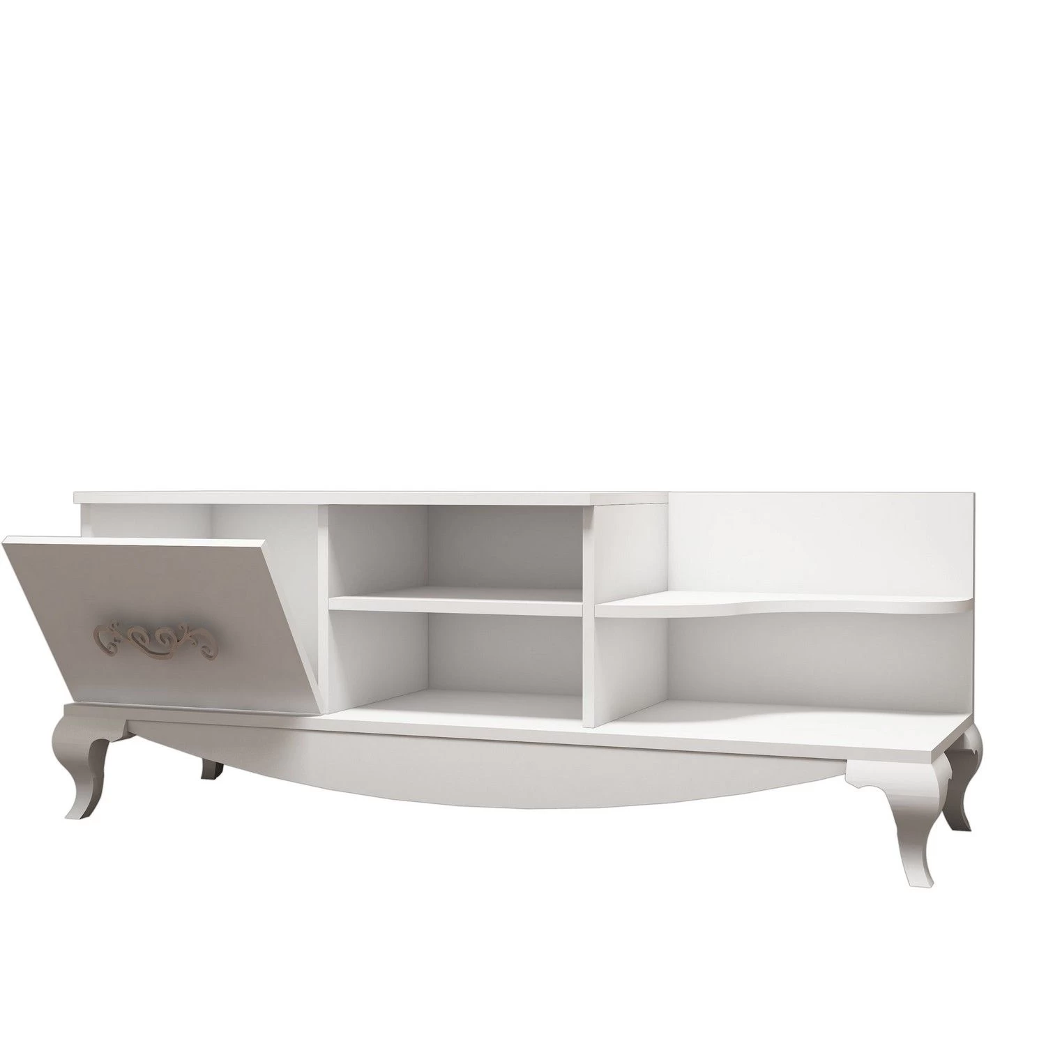 De Woody Fashion TV Stand is afgewerkt in prachtig wit en voegt een vleugje verfijning toe aan uw leefruimte. De kleur wit straalt netheid en eenvoud uit en past naadloos in elk interieur of kleurenschema. Wat de stijl van je huis ook is, dit TV-meubel vult je bestaande meubels moeiteloos aan en verbetert de algehele sfeer van de kamer.